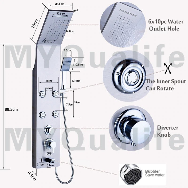 quantité de Douche 112 - Douche colonne en acier inoxydable 5 fonctions