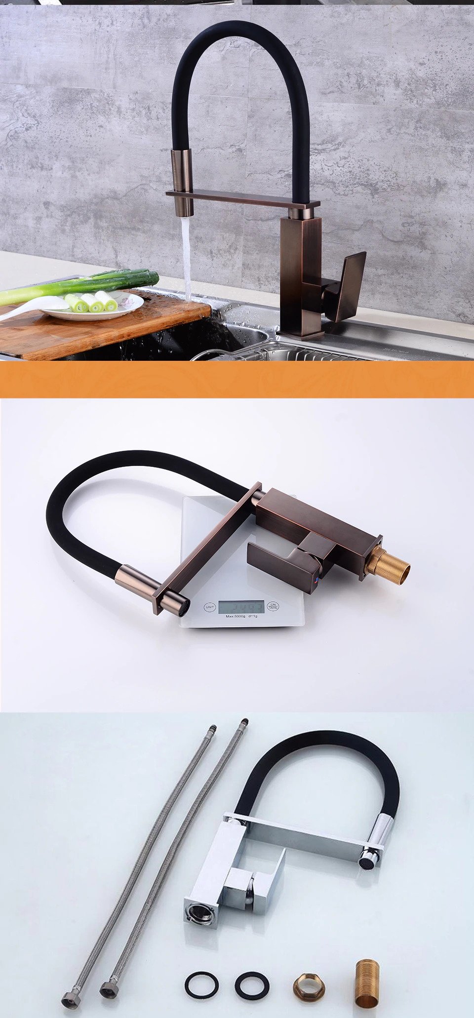 Robinet de cuisine 12 – Robinet en laiton massif flexible à 360 degrés
